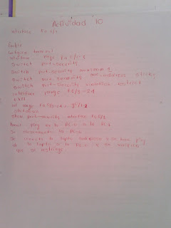 Aprendimos a configurar  un switch dándole el nombre del host, la contraseña correspondiente,  el nombre de dominio así como también las líneas vty. Configuramos  la función de seguridad de puertos para restringir el acceso a la red.  Habilité la seguridad de puertos para permitir solo dos hosts por puerto, entre otras cosas.